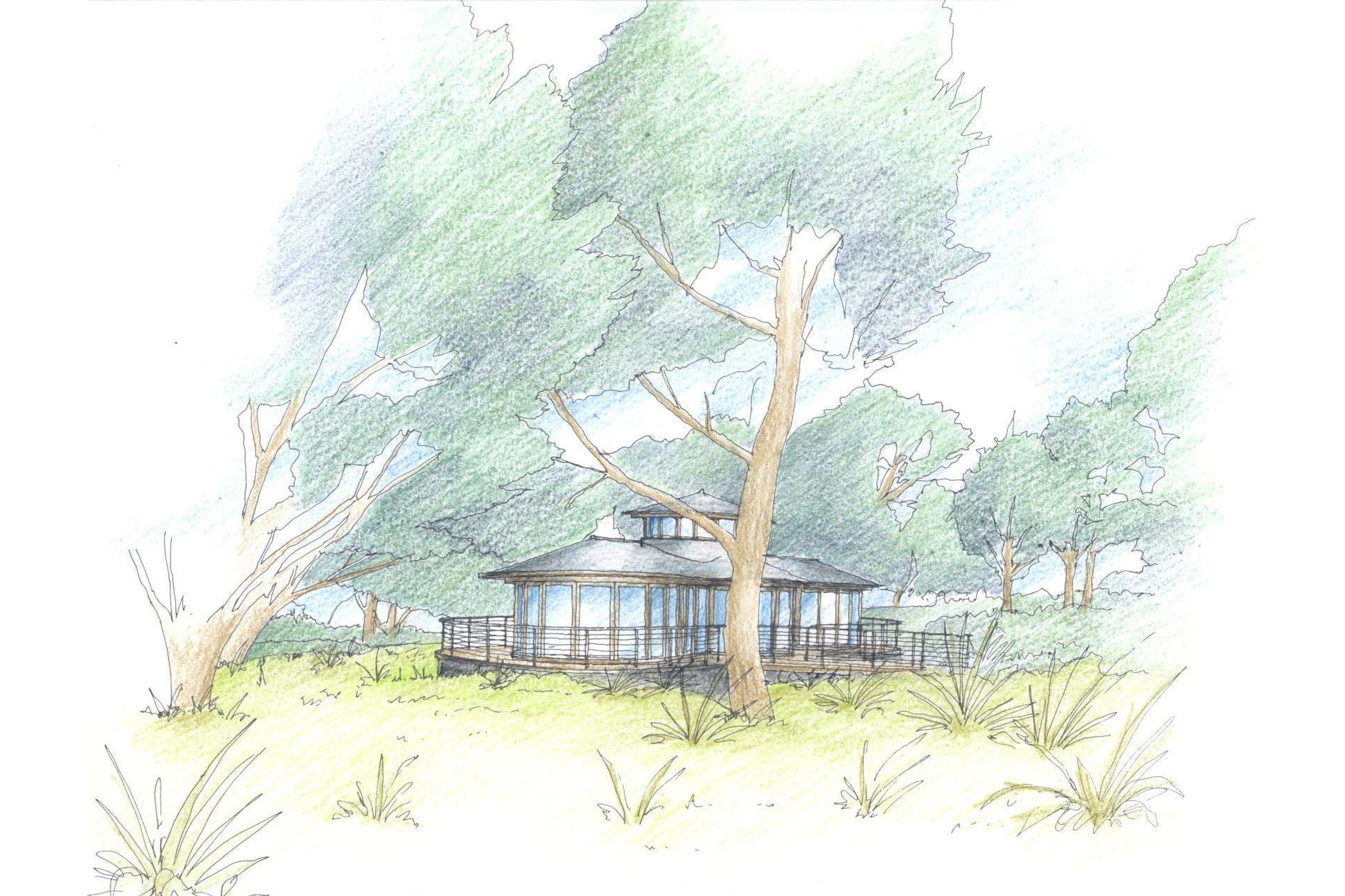 In contrast, the upper floor is a light, glass and timber pavilion. Sliding doors open onto a wraparound balcony, offering uninterrupted 360-degree panoramic views of the surrounding landscape.