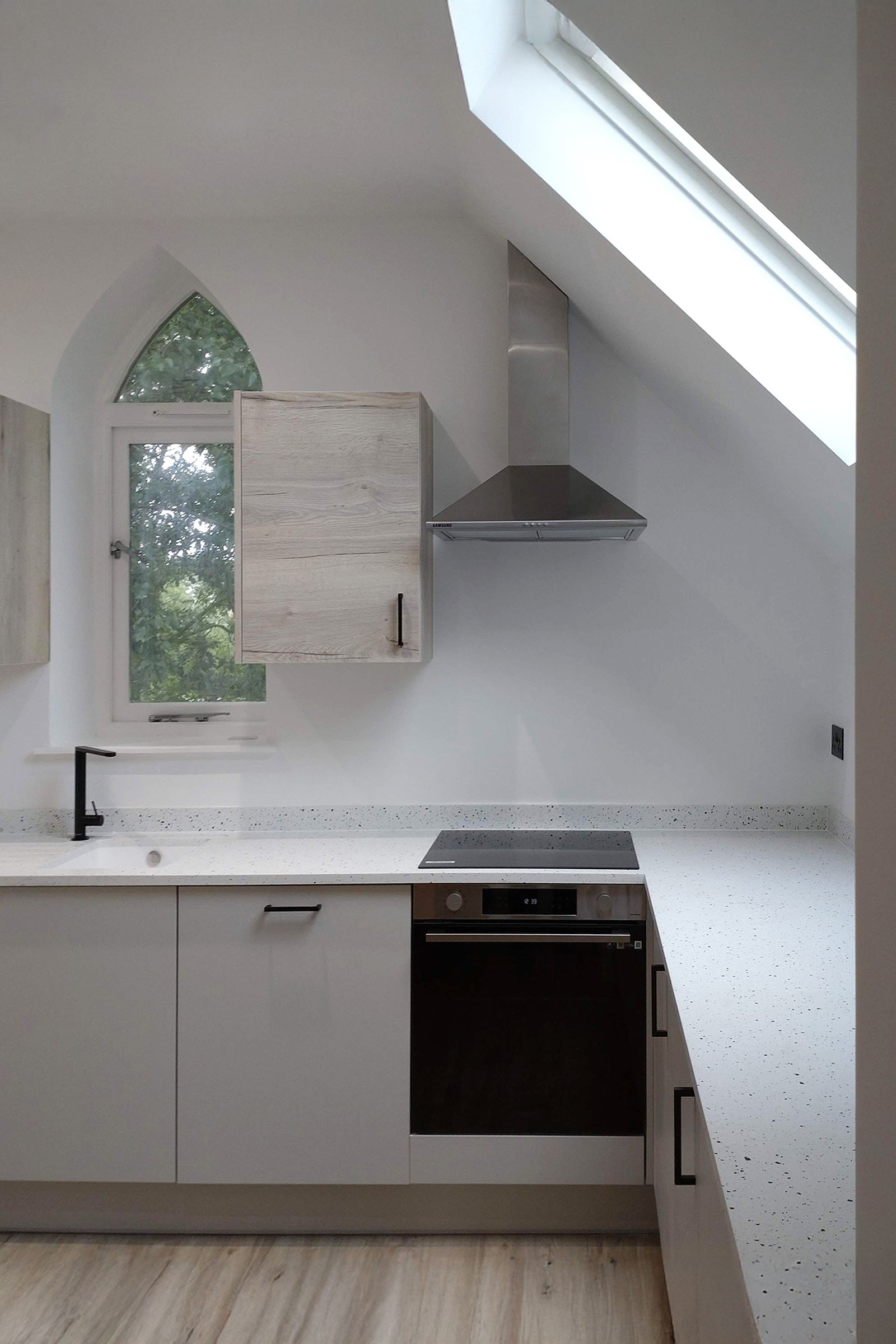 The conversion gives the former church a new lease of life, with contemporary interiors that respect the historic structure while providing attractive, modern homes.