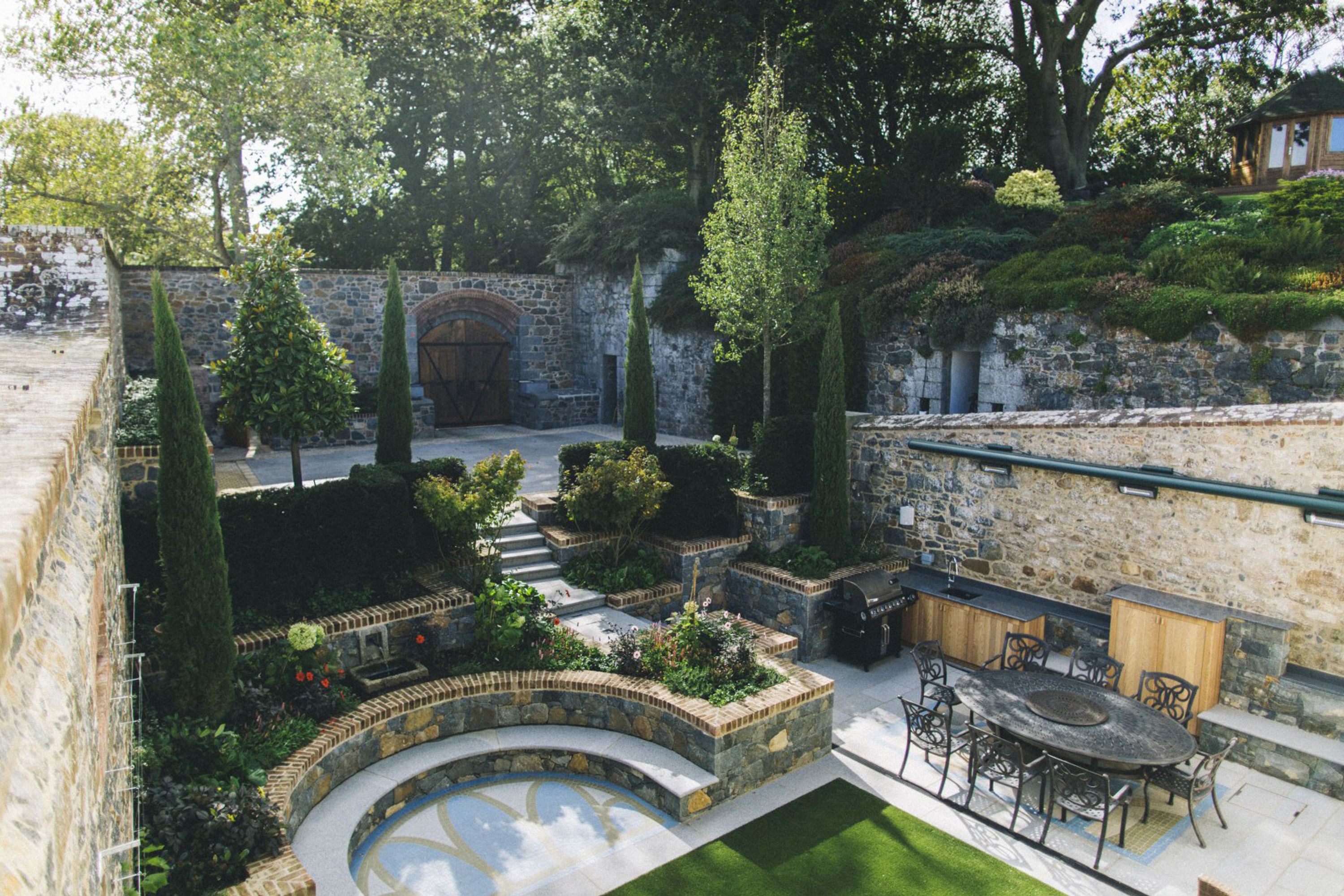 New stone and brickwork were carefully sourced to match the existing. Designed in collaboration with Welch Landscape Design, constructed by Granite Le Pelley, and overseen by Oliver Day, the project demonstrates meticulous attention to detail and exceptional finishing touches.