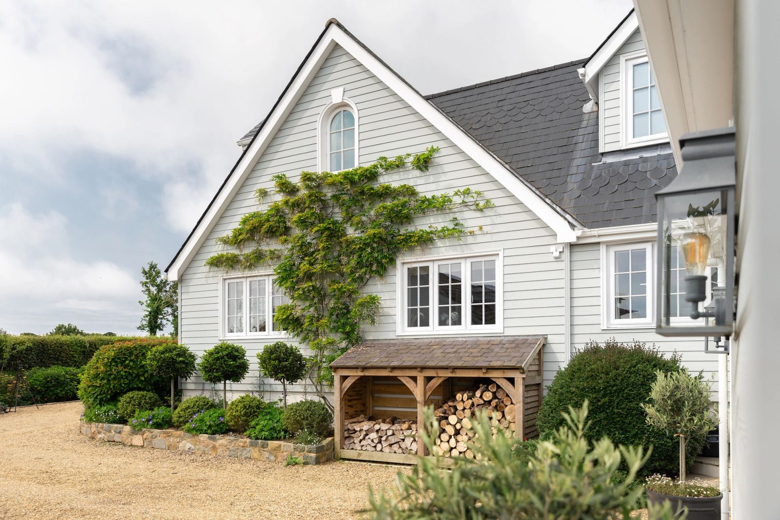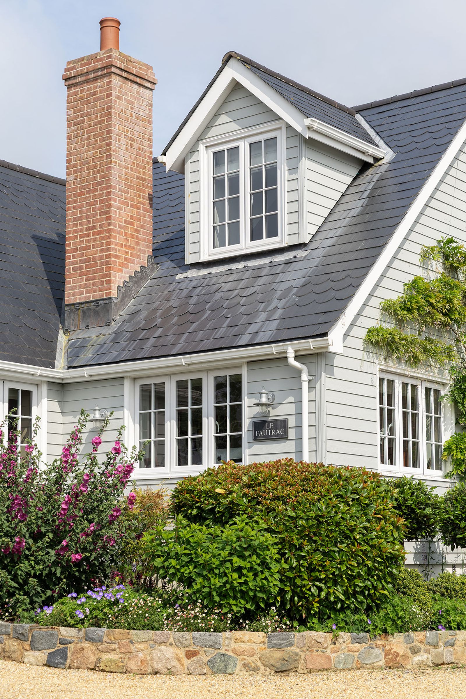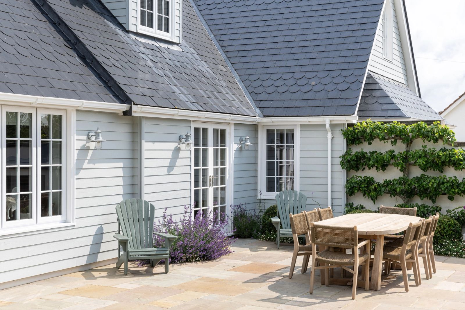 Externally, a new brick chimney stack anchors the design, and the building is fully clad in attractive New England-style composite materials. The result is a transformed home that balances contemporary elegance with the familiar charm of the original bungalow, creating a joyful and much-loved family residence.