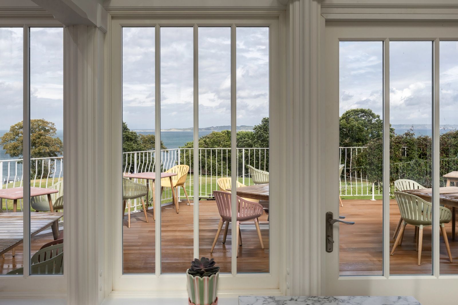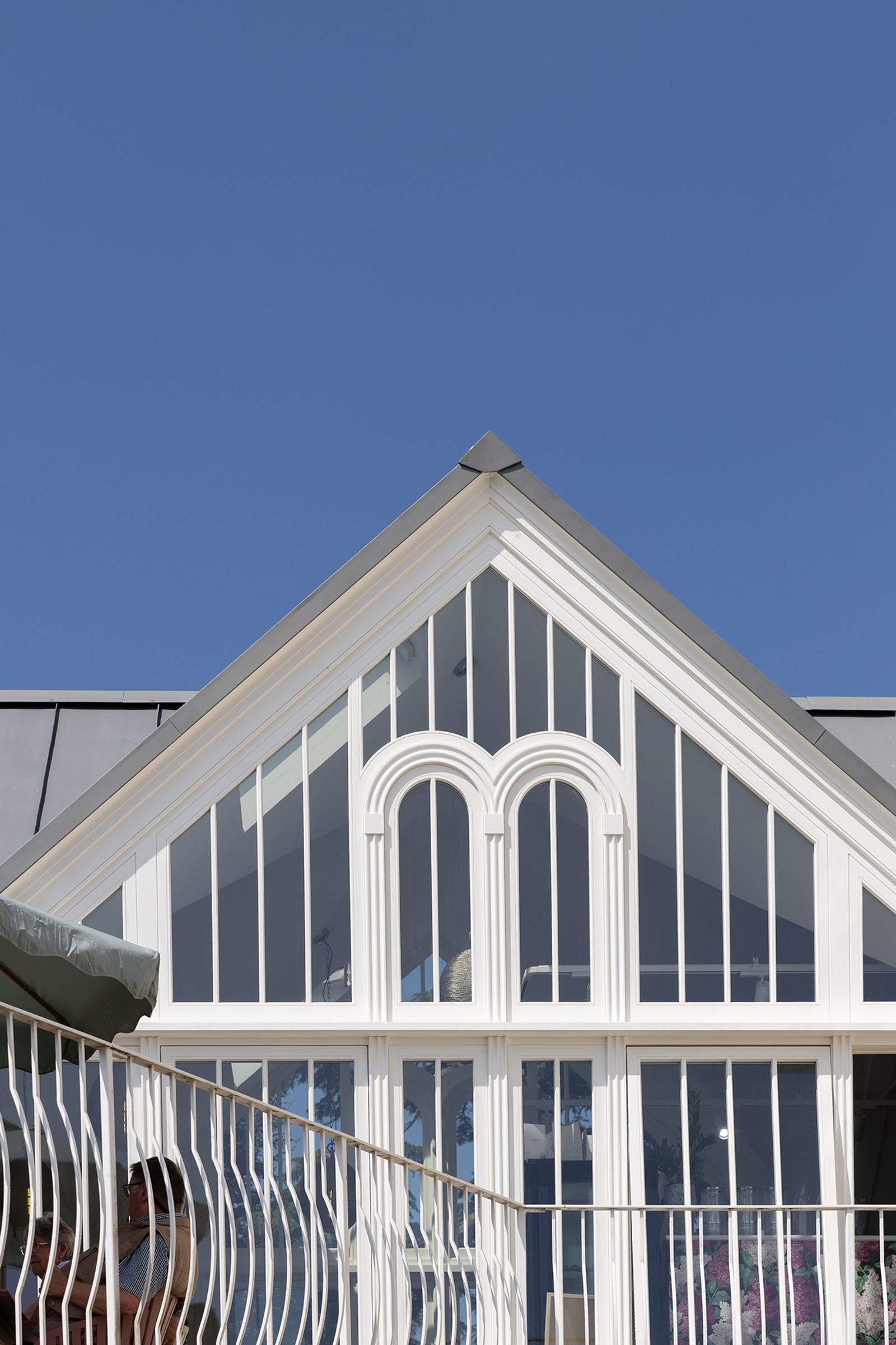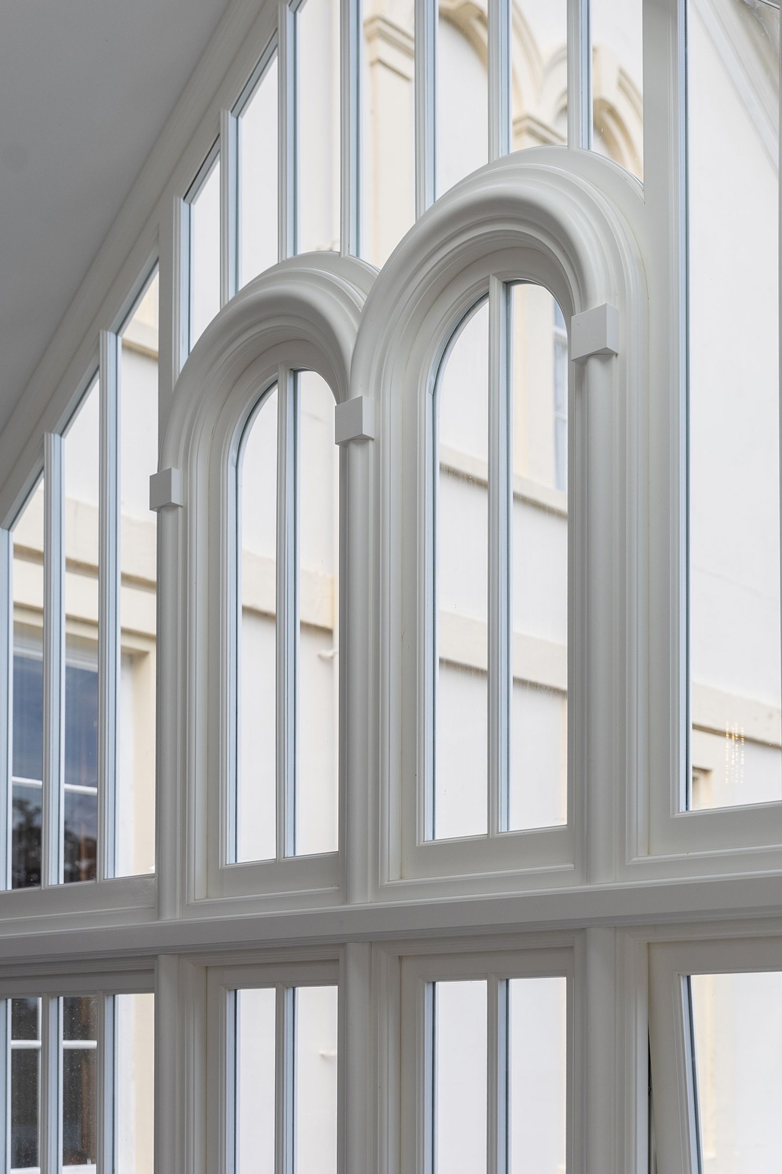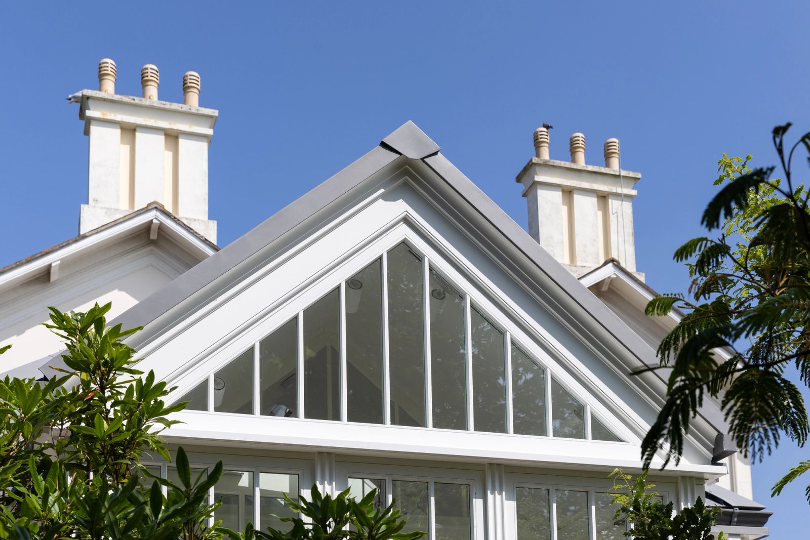 To address this, the roof and upper walls were removed, retaining only the dwarf walls and the original south partition. New walls replicate the decorative timberwork in painted Accoya with double-glazed units, and an insulated zinc roof ensures a comfortable internal environment. Additional features, such as a draft lobby and folding doors to the terrace, were carefully designed to preserve the appearance and setting of the original glasshouse.