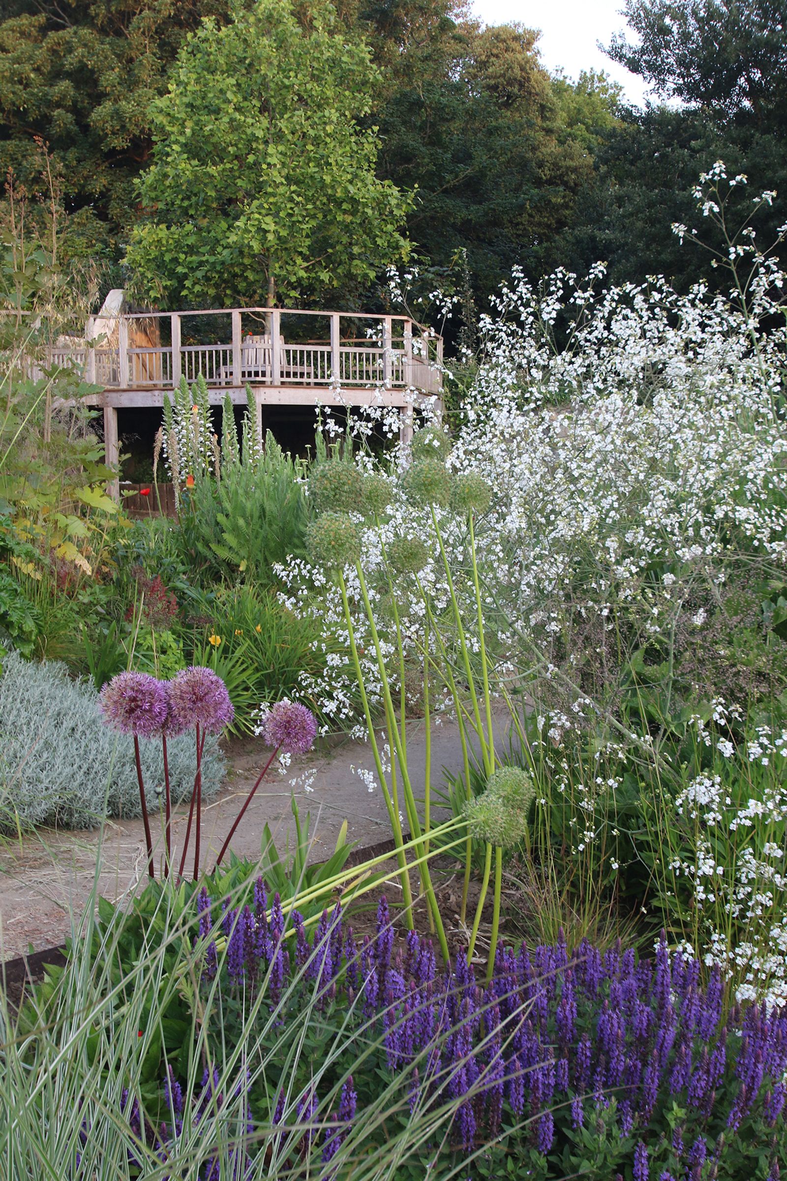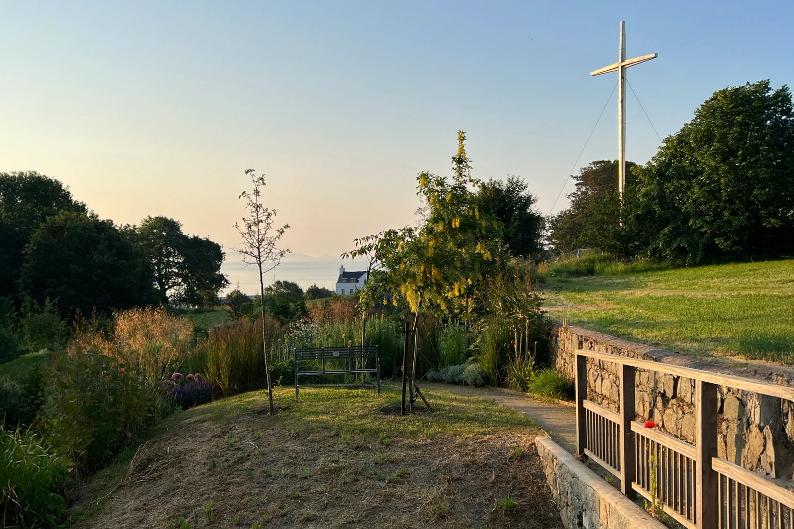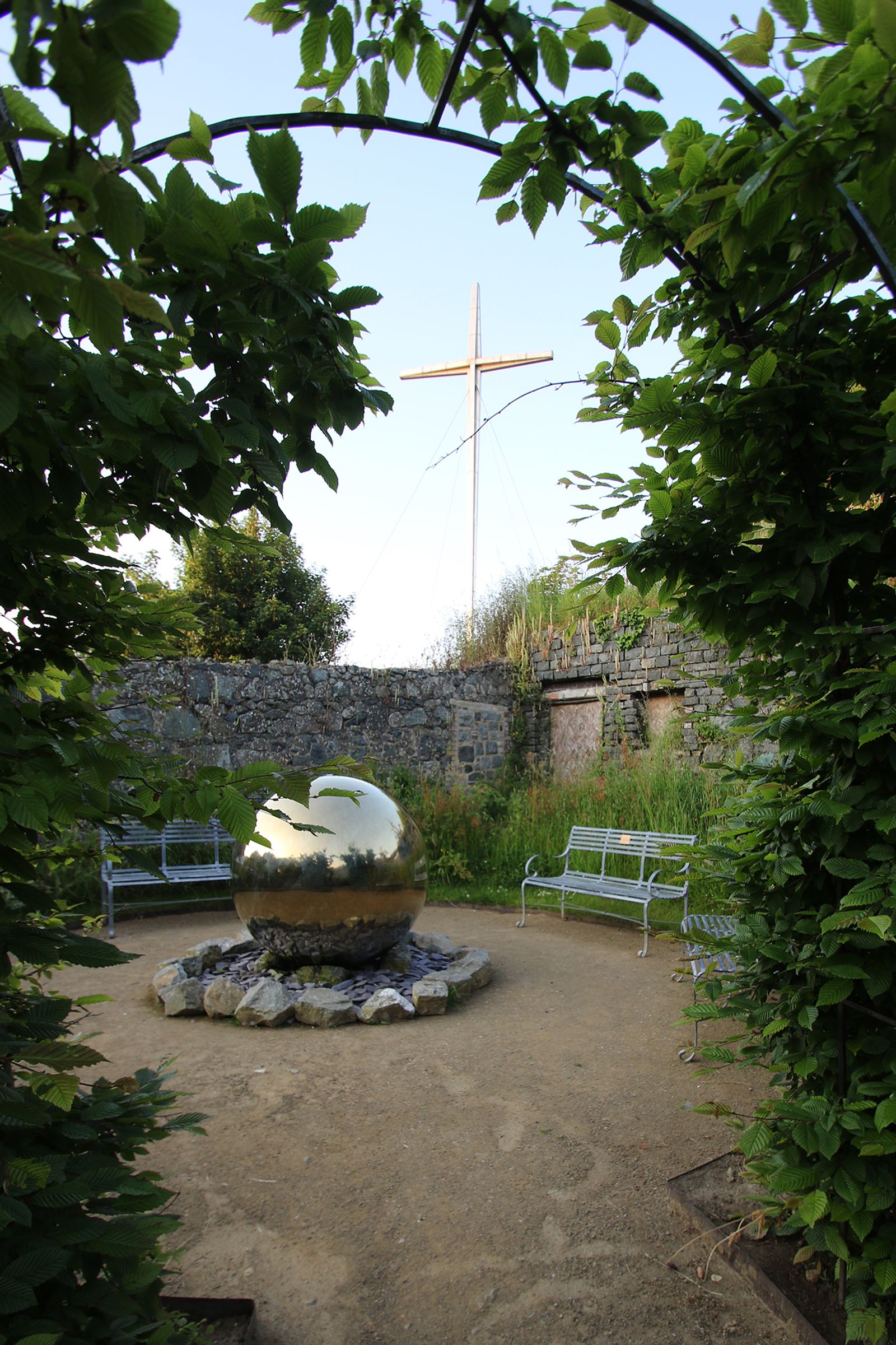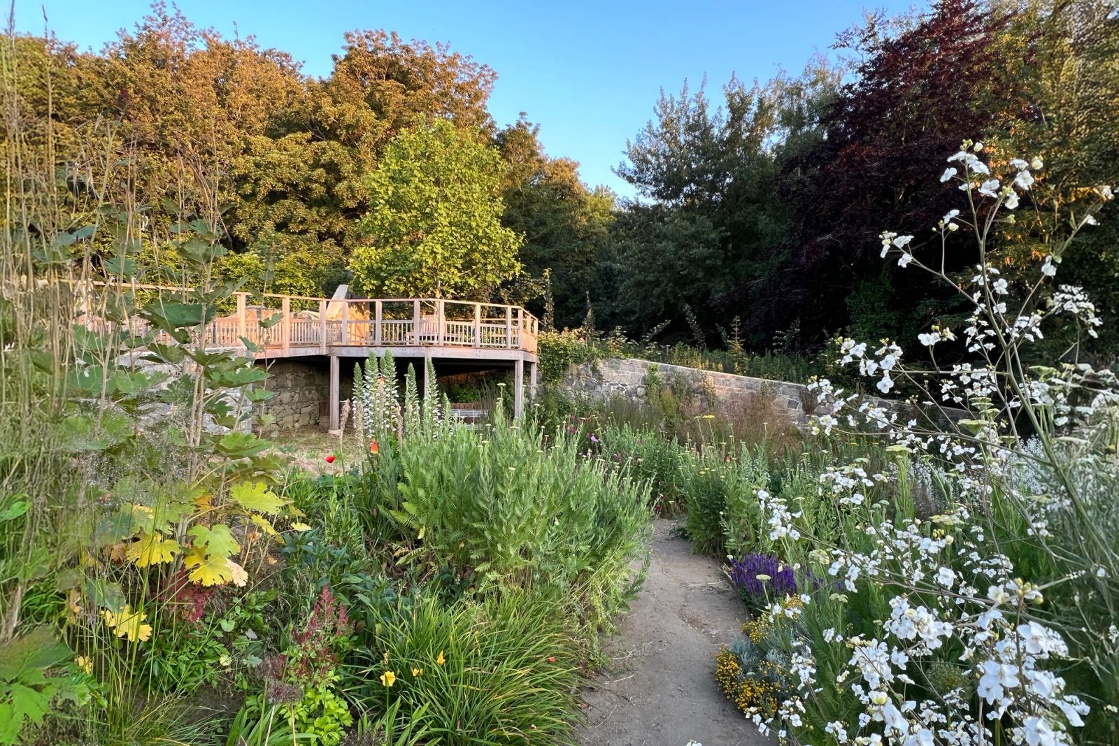 The Pat Merriman Peace Garden was created in collaboration with Landscape Architect Stephen Welch as a public sanctuary for reflection, therapy, and enjoyment of the natural world. Located within a 2,000m² walled area of Les Cotils’ grounds, the garden offers scenic views over St. Peter Port, the sea, and surrounding islands.