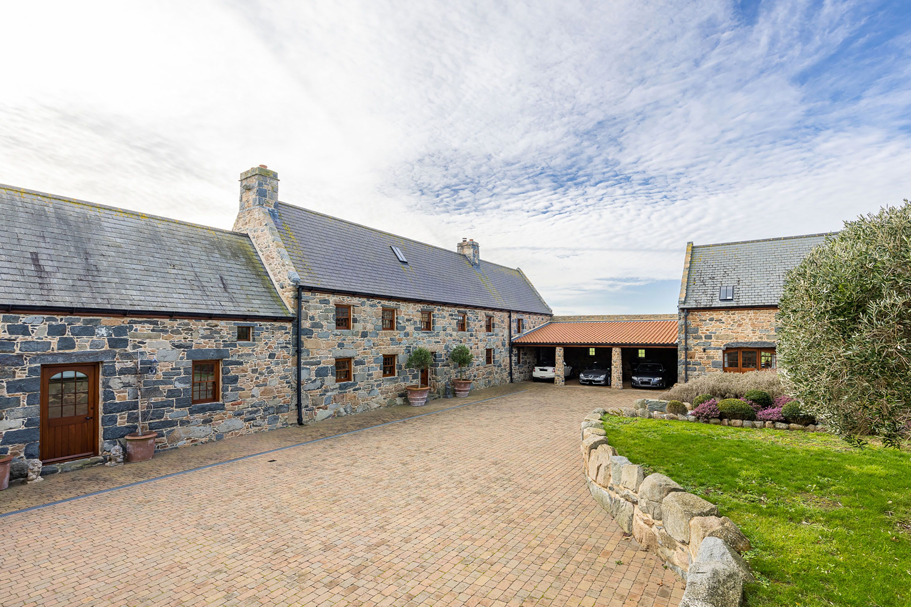 Les Grandes Mielles Farm has been transformed from a derelict farmhouse into a spacious, elegant family home, blending historic character with contemporary comfort.