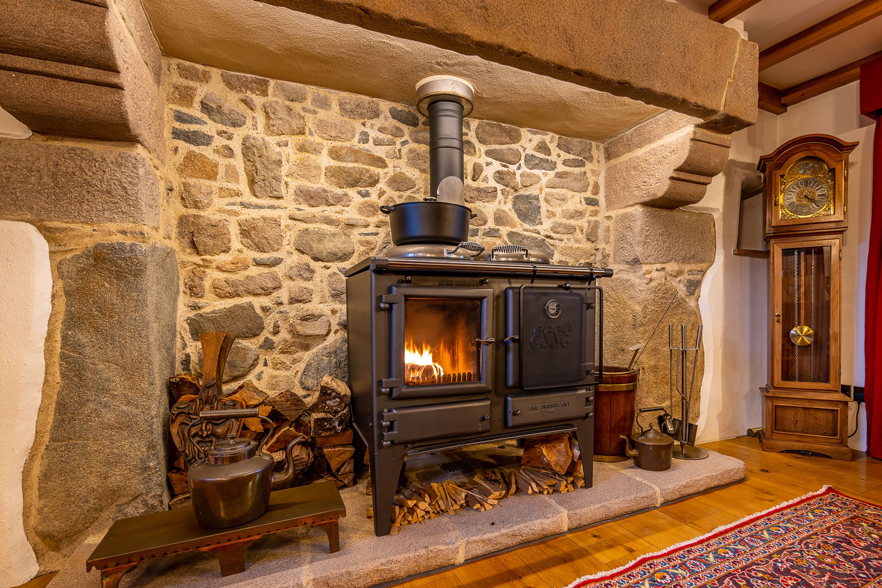 A three-storey extension was added to the rear, accompanied by a sympathetic lean-to conservatory with a solid roof. New oak fenestration was introduced throughout, and the brick chimney stacks rebuilt in local granite, enhancing the farmhouse’s historic character. Comprehensive insulation improved the building’s thermal performance without compromising its traditional appearance.