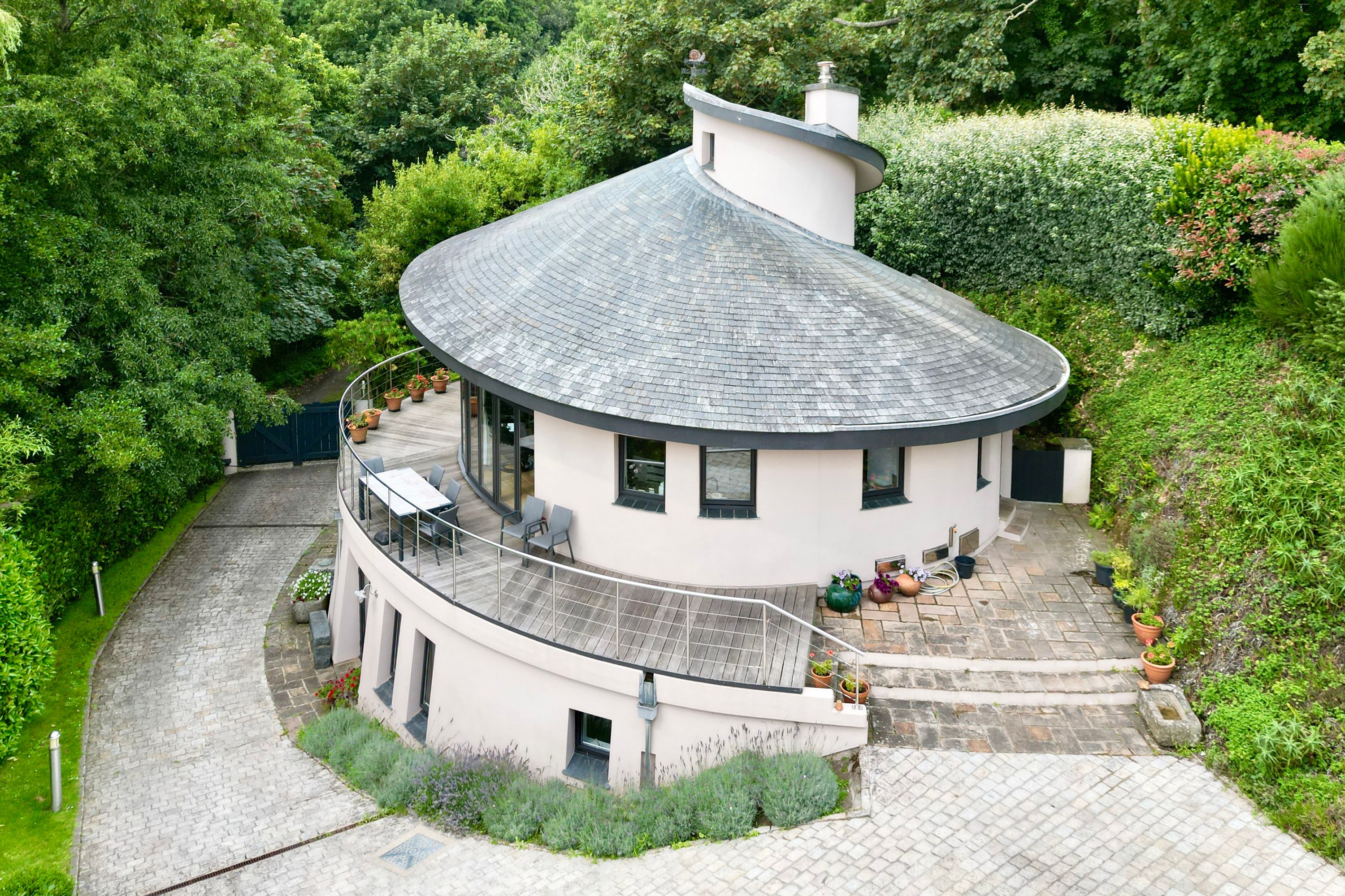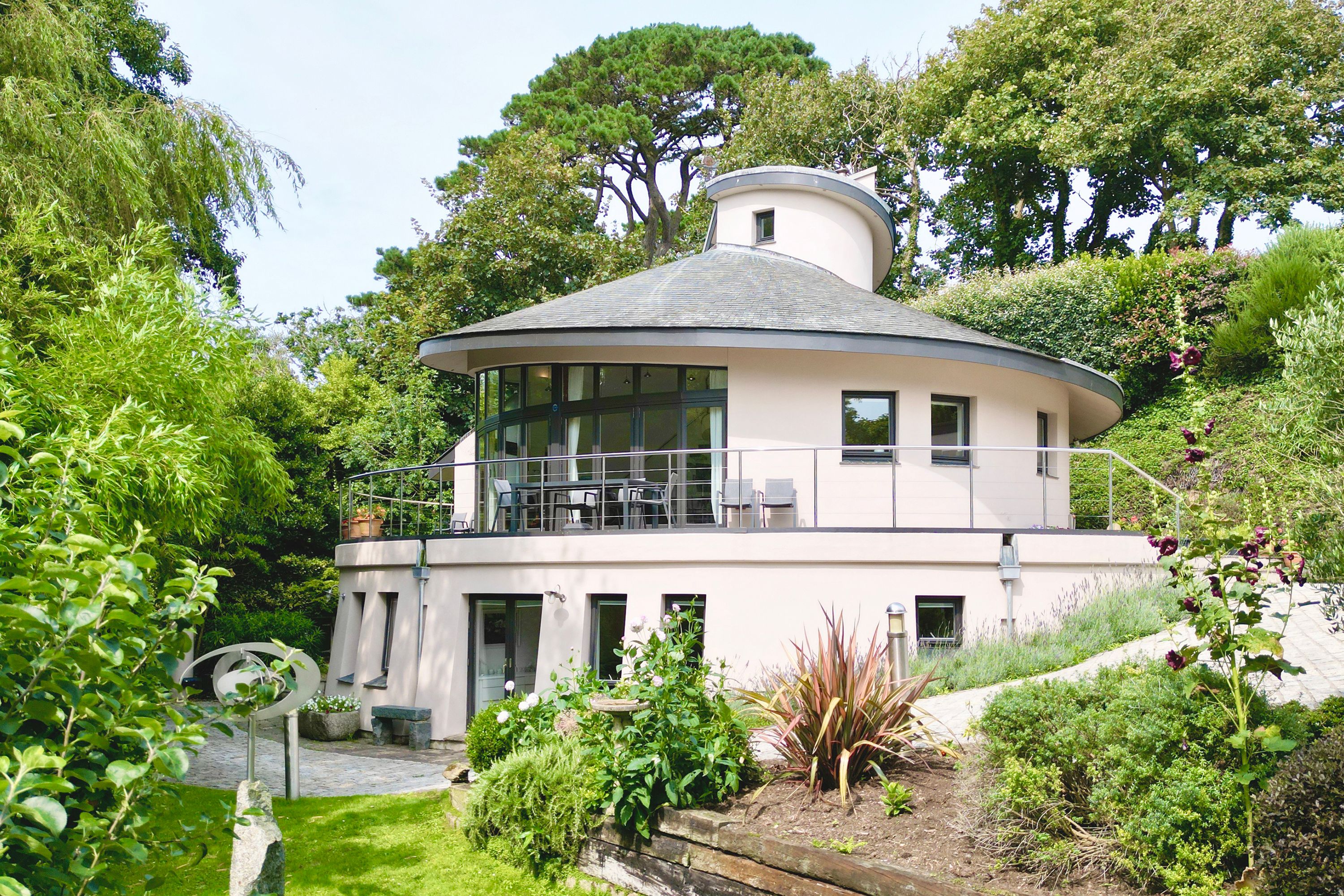 Set at the head of a wooded valley with sweeping views to the cliffs and sea, L’Escargot is one of Guernsey’s most distinctive homes.