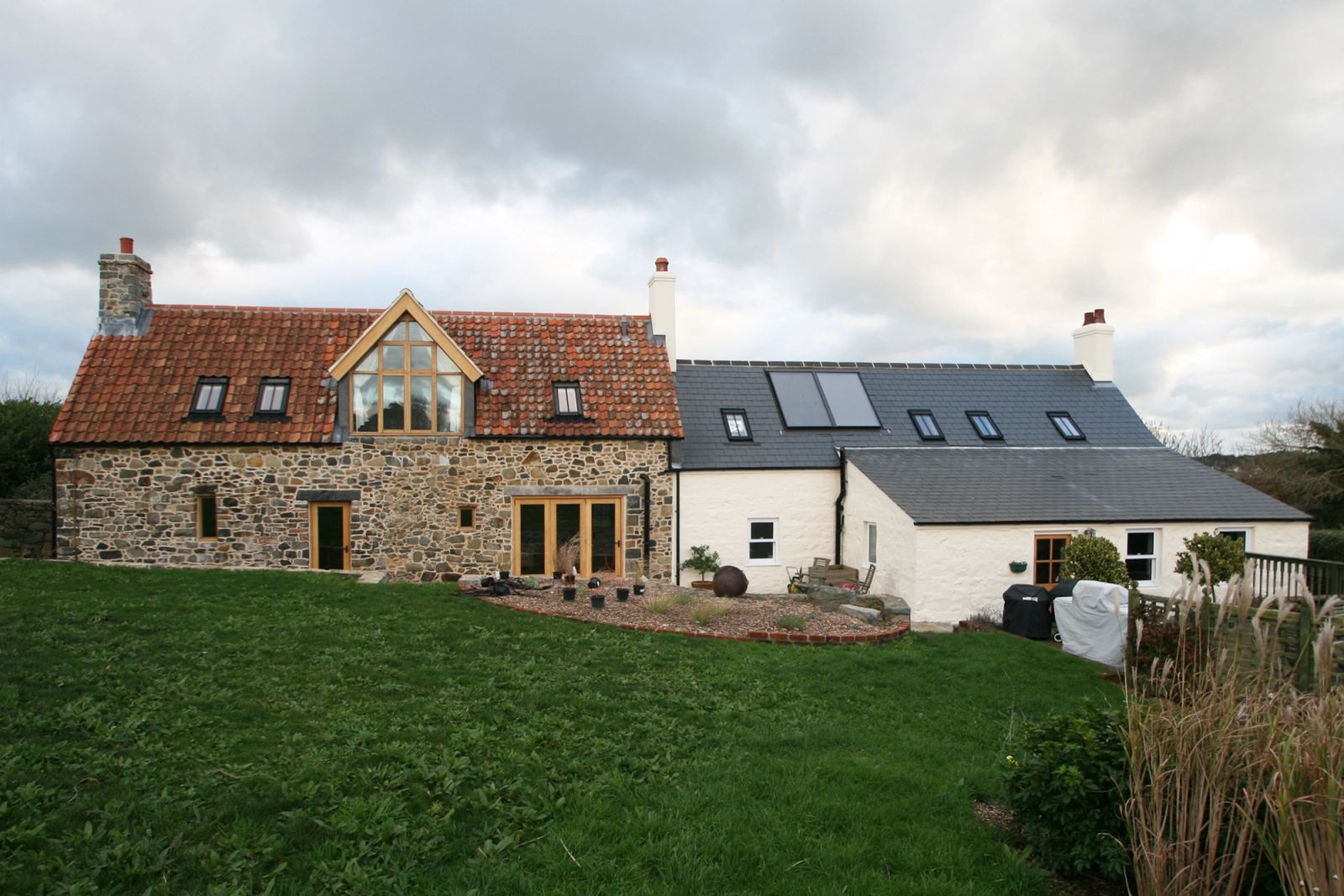 Works to the inhabited cottage included removing cement render, lime repointing the granite walls, installing a natural slate roof, and adding a new entrance porch. A detached garage was also designed to complement the setting.